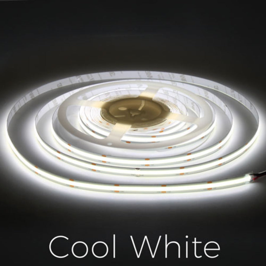 The SwitchToLED 24VDC Accent Series Dotless COB LED Strip Light delivers flawless, continuous illumination with advanced Chip-on-Board (COB) technology, featuring 528 LEDs per meter and a high CRI >90 for up to 1400 lumens per meter of bright, true-to-life lighting without visible dots. Selectable in 3000K Warm White, 4000K Neutral White, or 6000K Cool White, this 24V flexible strip is designed for professional installations and longer runs, making it perfect for kitchens, workspaces, retail shelves, and accent lighting. Built with industrial-grade 3M adhesive and cuttable every 2.46 inches, it allows precise customization with no wasted length, while the 24V design minimizes voltage drop for longer continuous runs compared to 12V strips. Each 10M (32.8ft) reel is ETL Listed for safety and can be extended end-to-end or routed around corners using wire or solderless connectors. Operating on 24V DC constant voltage at 14W per meter (~140W per reel), the strip is highly efficient and should be paired with a properly sized power supply (10–20% overhead recommended). Fully dimmable, it works seamlessly with 24V PWM dimmers or dimmable power supplies compatible with standard wall dimmers such as Lutron and Leviton, making it a reliable choice for both residential and commercial projects.