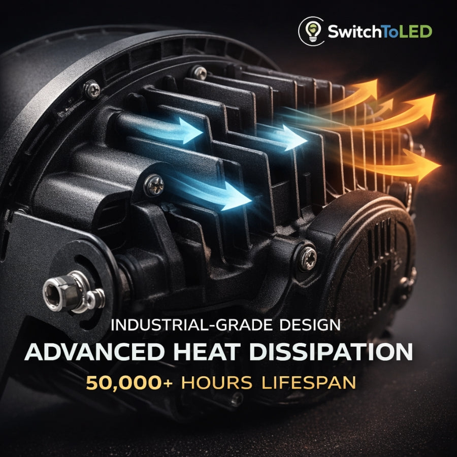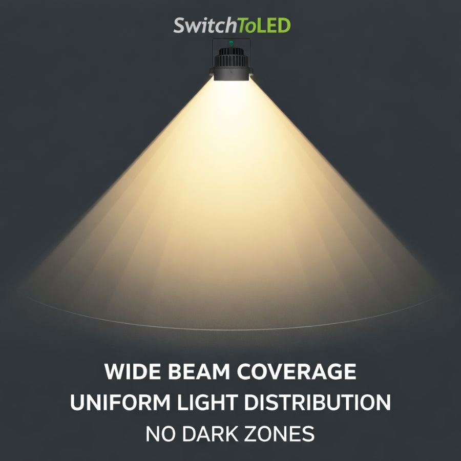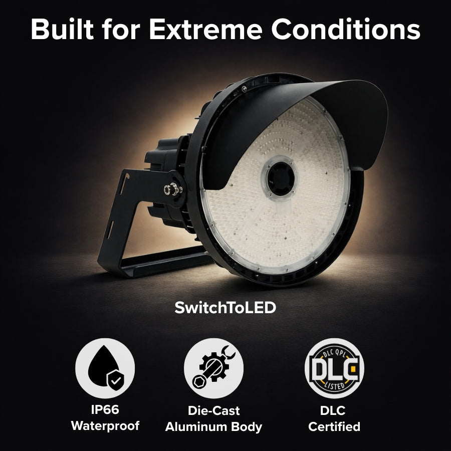 Built for reliability in harsh outdoor environments, it features a rugged die‑cast aluminum housing, IP65 weatherproof protection, and 0‑10V dimming capability for energy‑saving control. Whether lighting football fields, arenas, high mast poles, or industrial outdoor areas, the SwitchToLED sport light offers uniform high‑quality illumination, instant ON performance, and adjustable beam angles to meet diverse project requirements.