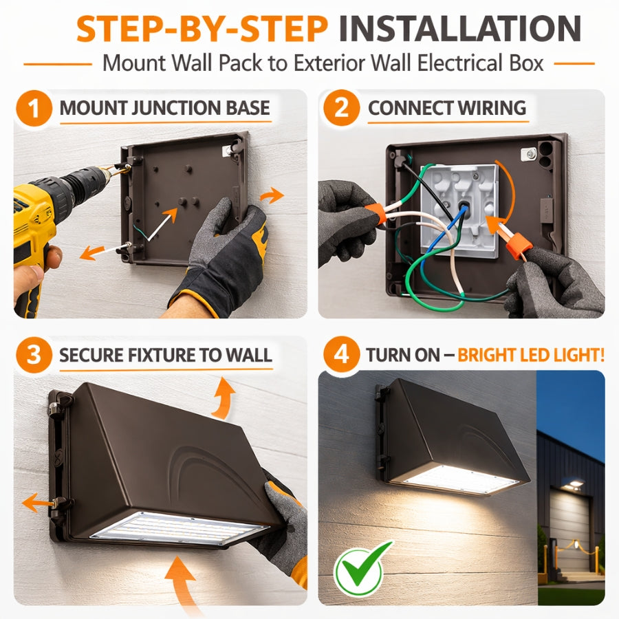 This 40W LED wall pack is a direct replacement for traditional 175W metal halide wall pack fixtures, delivering comparable brightness with significantly lower energy consumption.