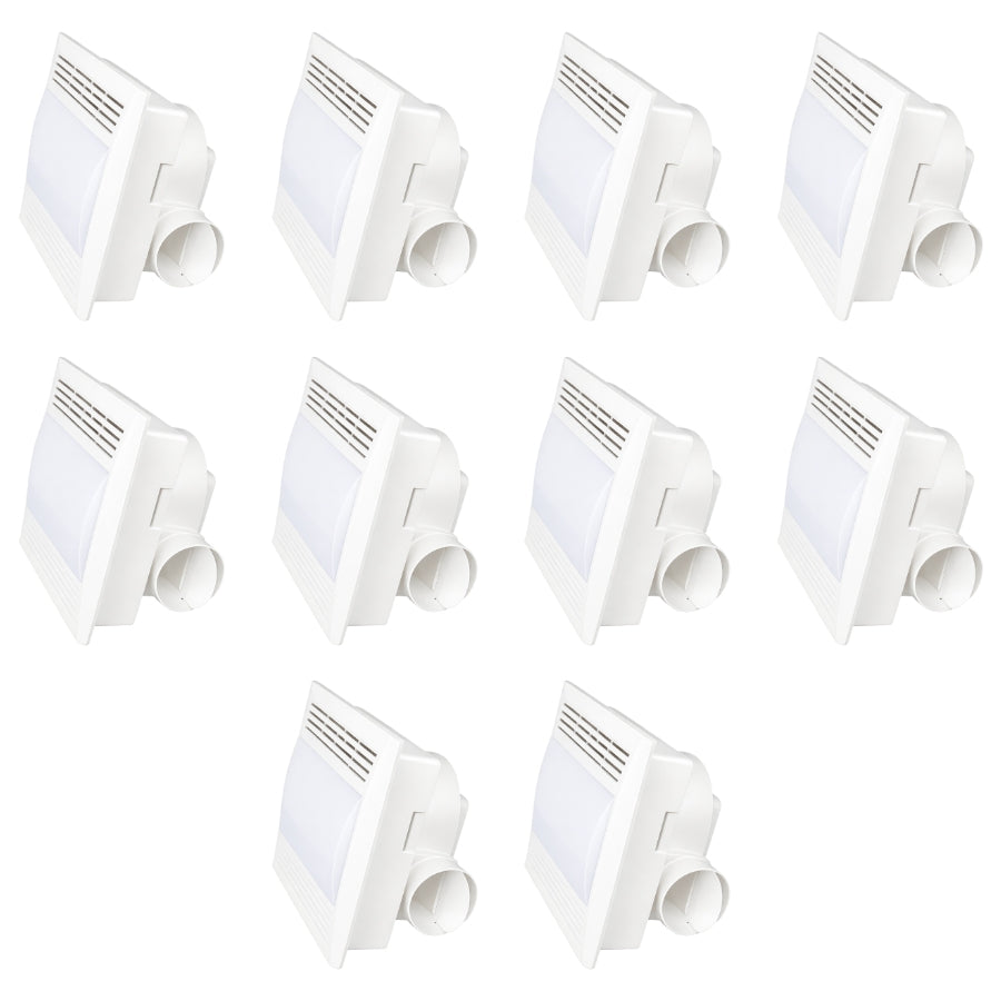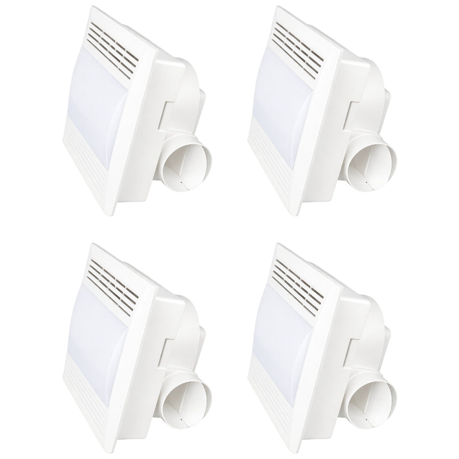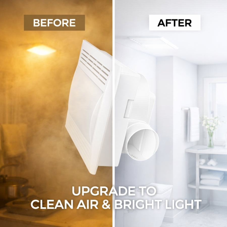 Designed for rooms up to 100 sq ft, this ceiling mount exhaust fan with light offers reliable performance with low noise operation for maximum comfort. The IP44 damp-rated construction ensures safe operation in humid environments, while the durable white housing blends seamlessly with modern interiors. Suitable for both new construction and retrofit installations, this unit provides energy-efficient ventilation and lighting in one compact design. Backed by a 5-year SwitchToLED warranty, it delivers long-lasting, maintenance-free performance.