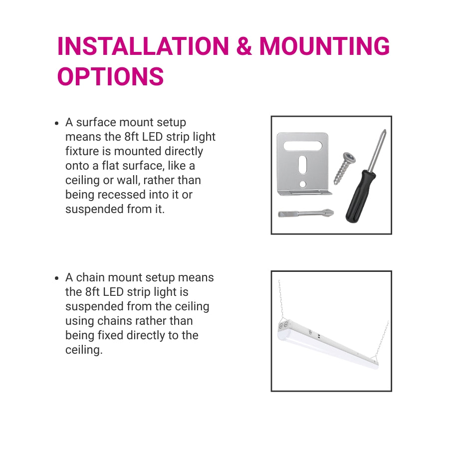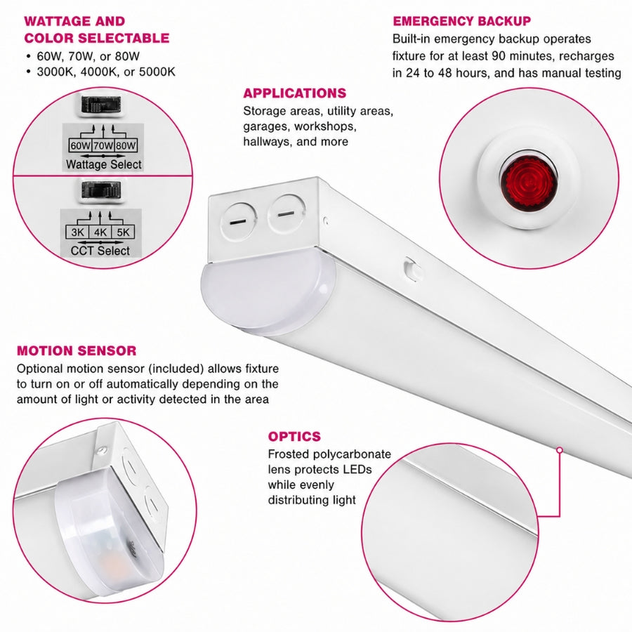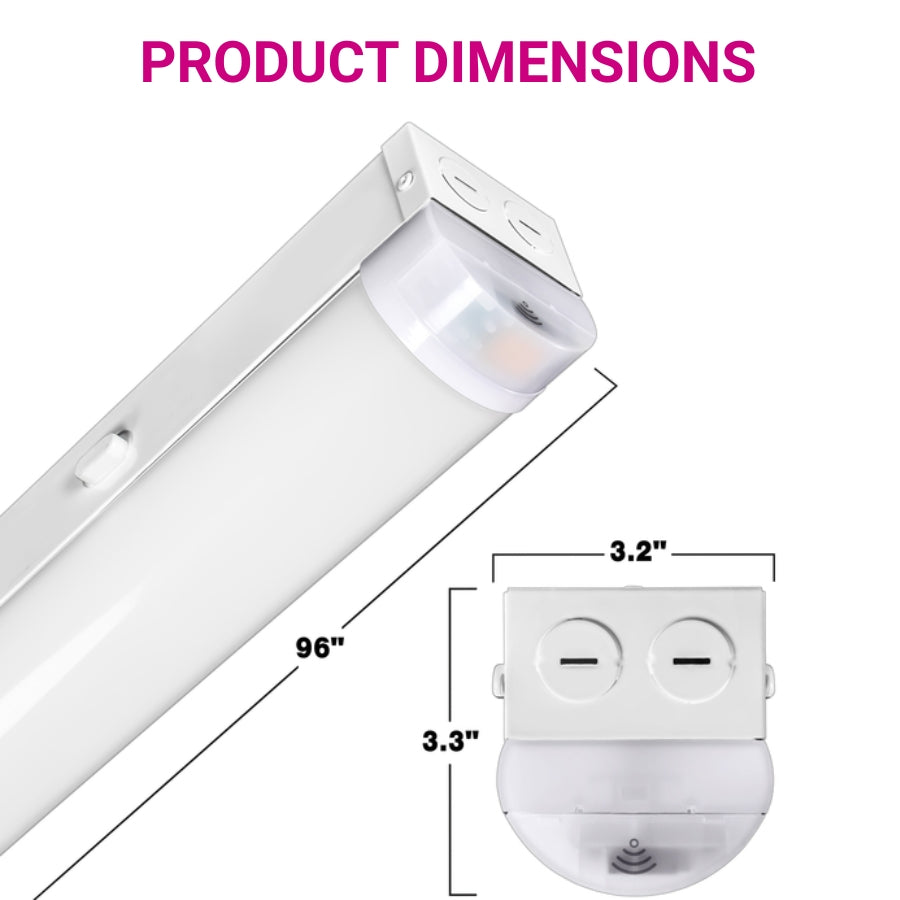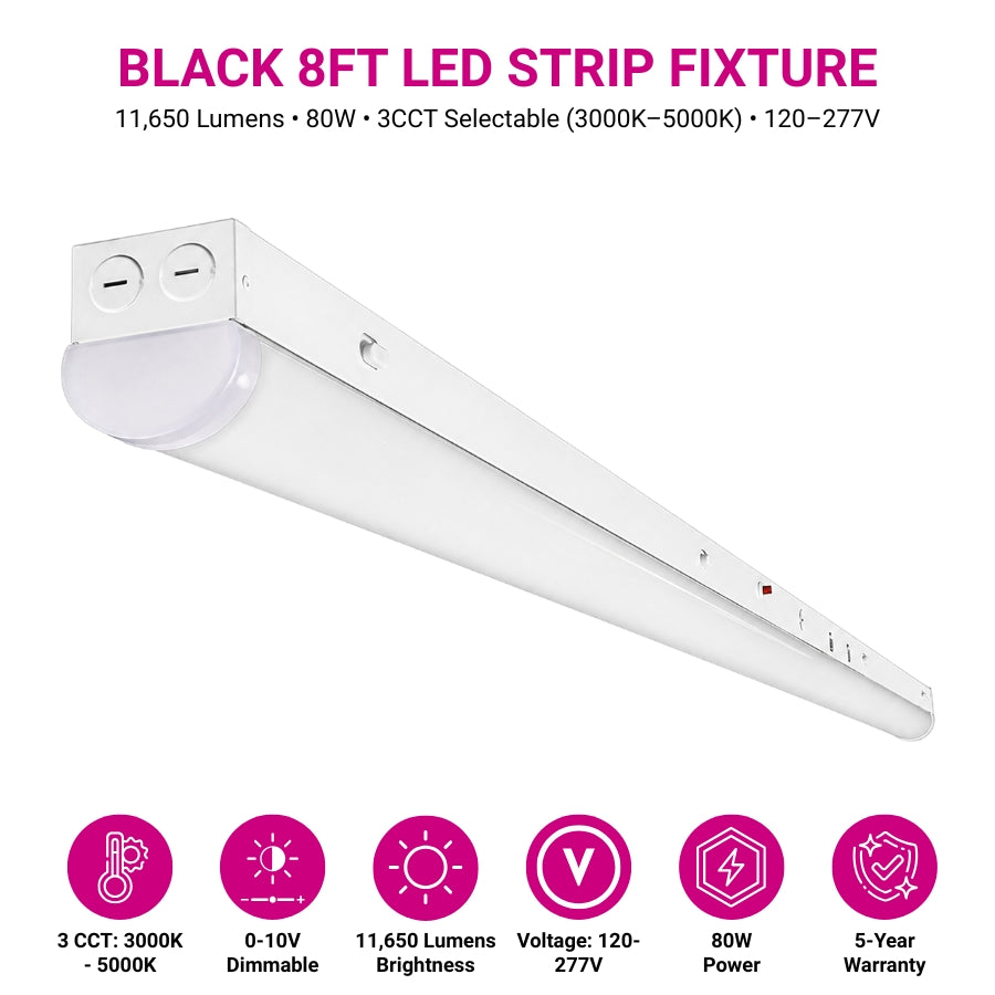 With 0-10V dimming capability, 102,000-hour lifespan, and DLC 5.1 & UL certification, this 8FT strip fixture is the perfect solution for warehouses, offices, retail spaces, garages, and utility areas.