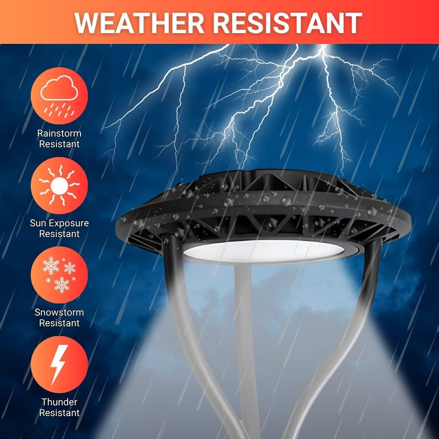 Built with die-cast aluminum housing and IP65-rated waterproof protection, this fixture operates smoothly across voltage ranges from AC100-277V and is covered by a 5-year manufacturer warranty for added peace of mind.
