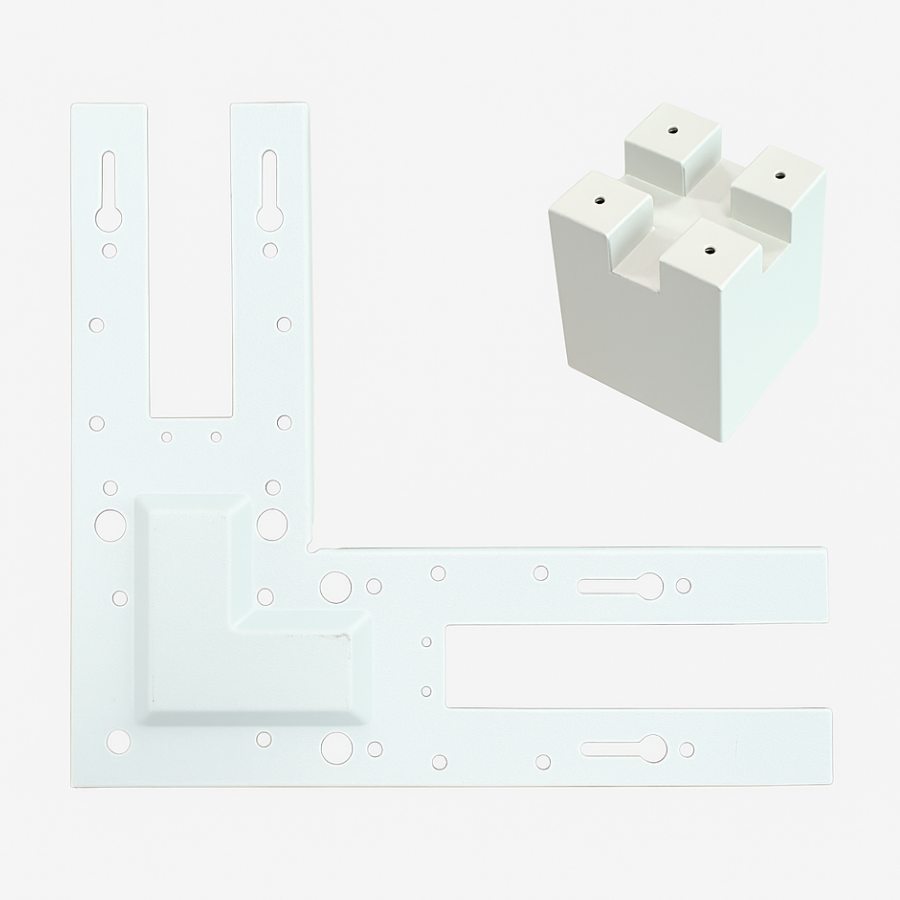 The SwitchToLED White L Shape Linking Bracket is designed for connecting two track lighting sections at a clean 90° angle or straight run. Made of strong metal with a crisp white finish, it delivers both durability and style. This connector includes straight and right-angle covers, giving you flexibility to match your installation needs.